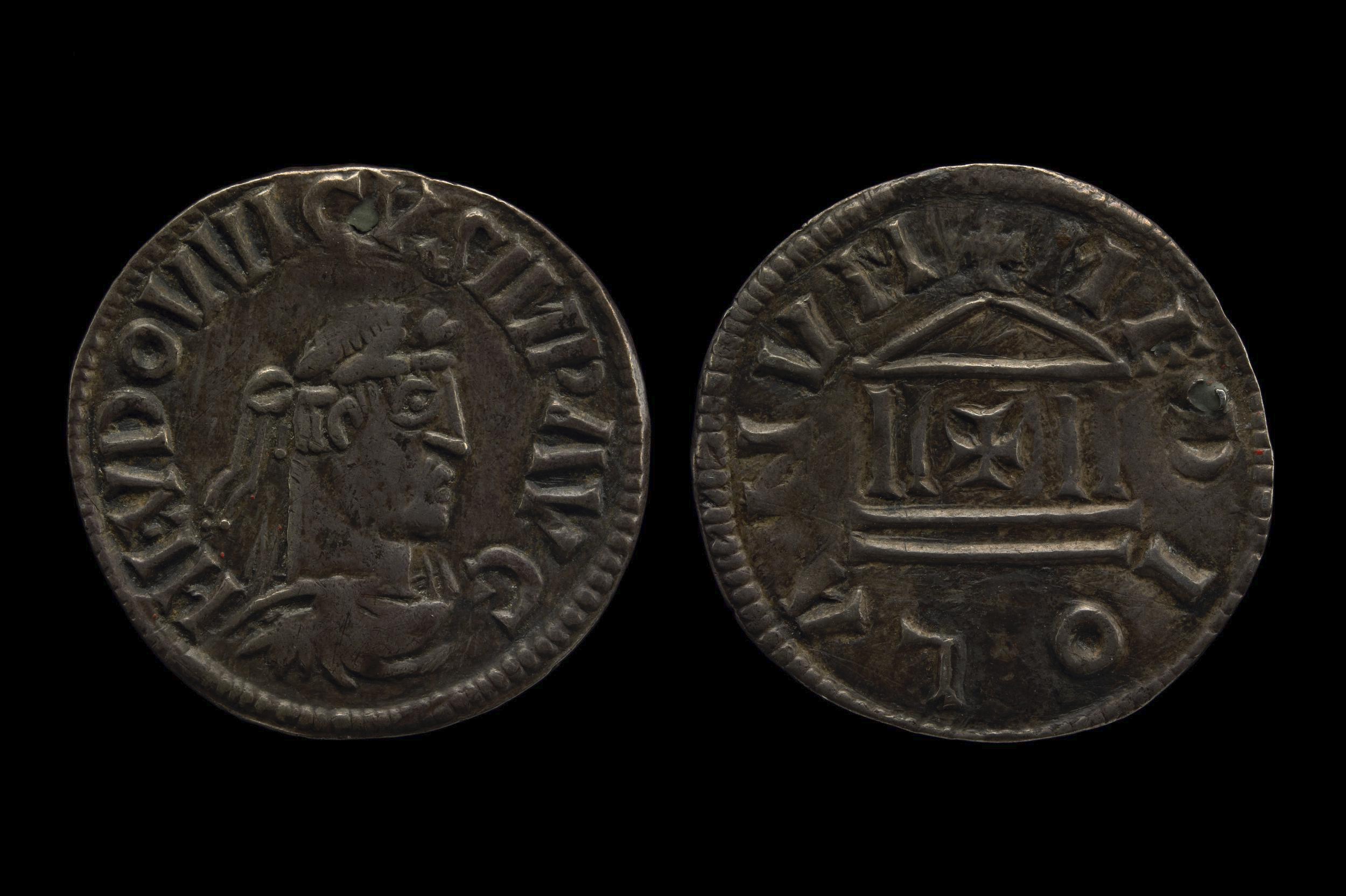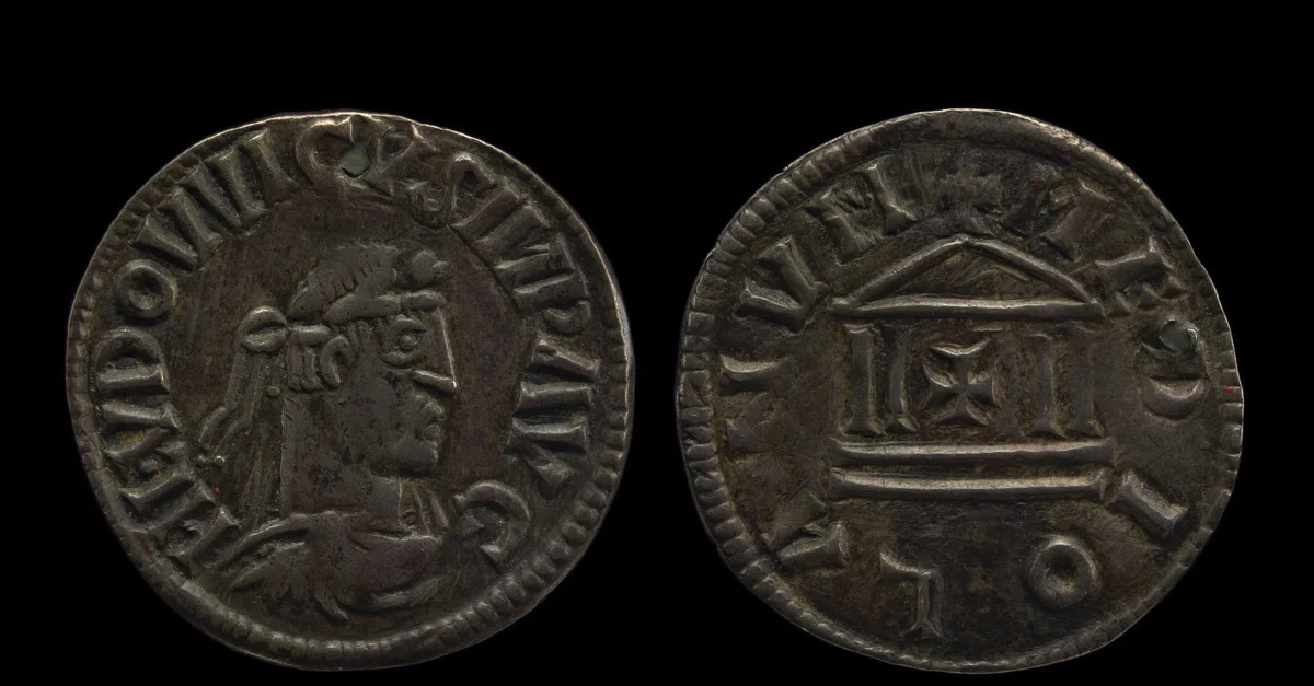 9th-century silver coin depicting Louis the Pious, Holy Roman Emperor and King of the Franks (r. 814-840).