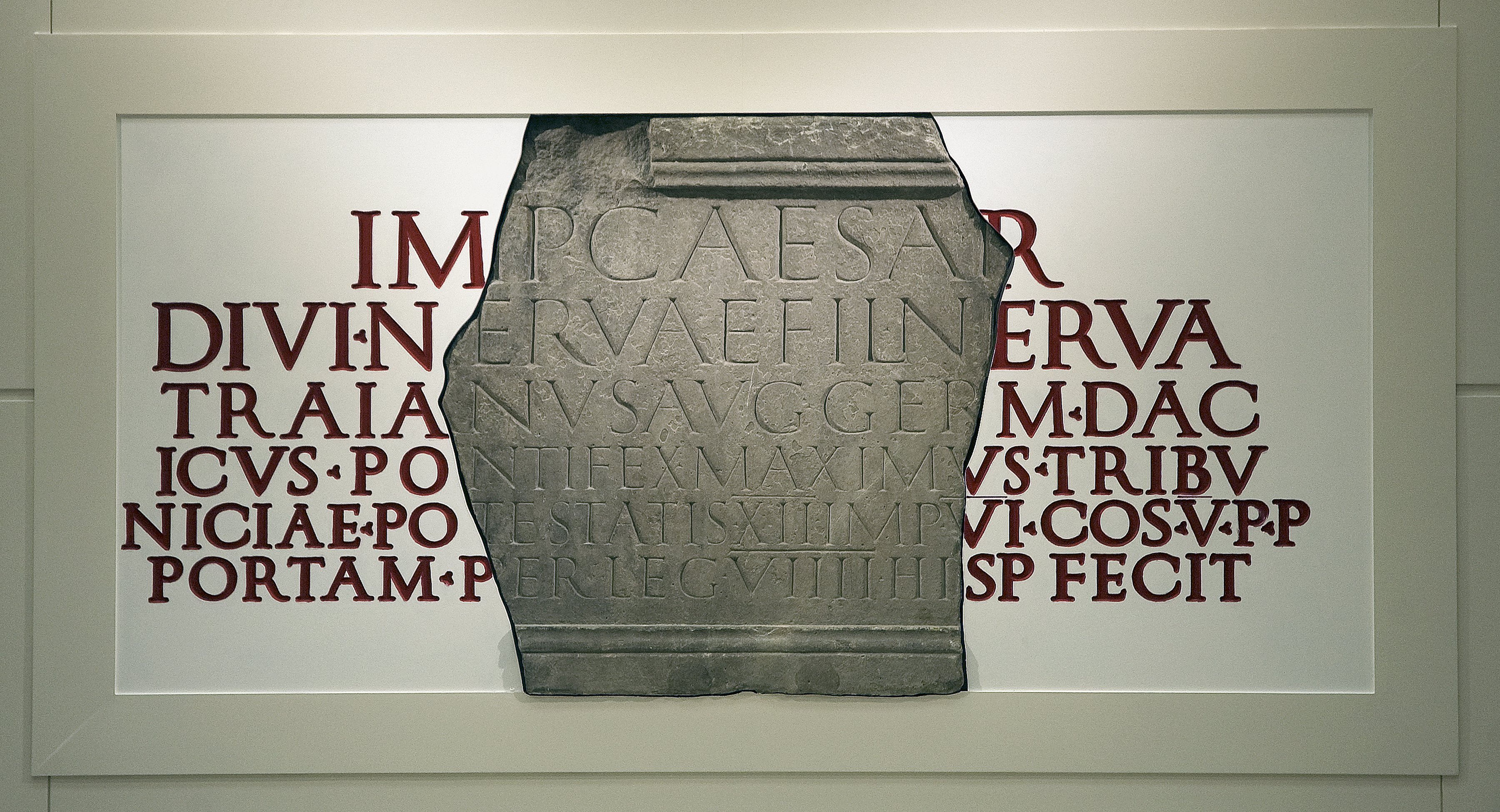 Commemorative Tablet fragment of an inscription recording the building in stone of the SE gate of the fortress at Eboracum (York) under Trajan, c. 108 CE.