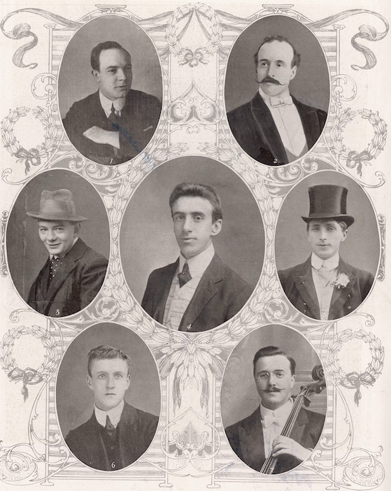 The musicians of RMS Titanic who played right until the ship sank in the Atlantic after hitting an iceberg on 15 April 1912. None of the band survived the disaster.