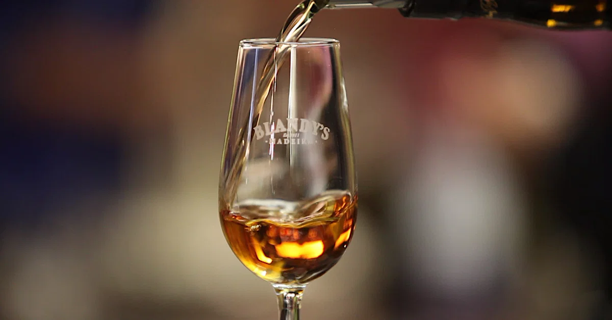 A glass of Madeira wine, produced on the Portuguese island of Madeira since the 15th century.