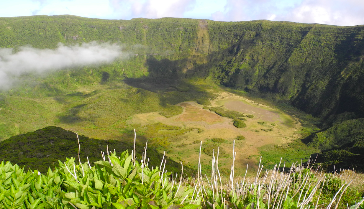 The Faial volcanic crater in the Azores archipelago, North Atlantic. The Azores were colonized by the Portuguese from the 15th century.