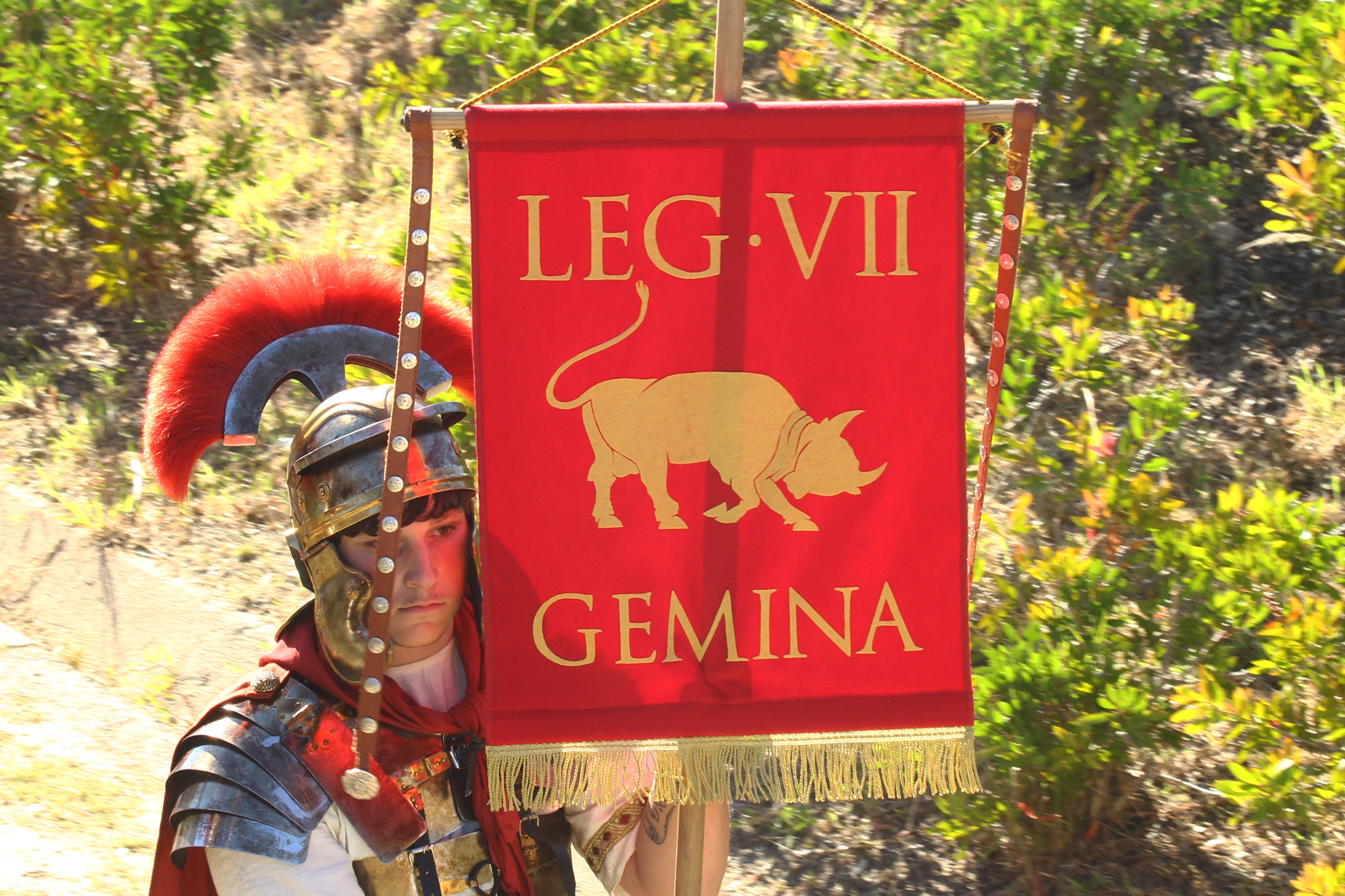 Estrelas, C. (2021, May 21). Reenactor with the Emblem of Legio VII Gemina. World History Encyclopedia. https://www.worldhistory.org/image/14063/reenactor-with-the-emblem-of-legio-vii-gemina/