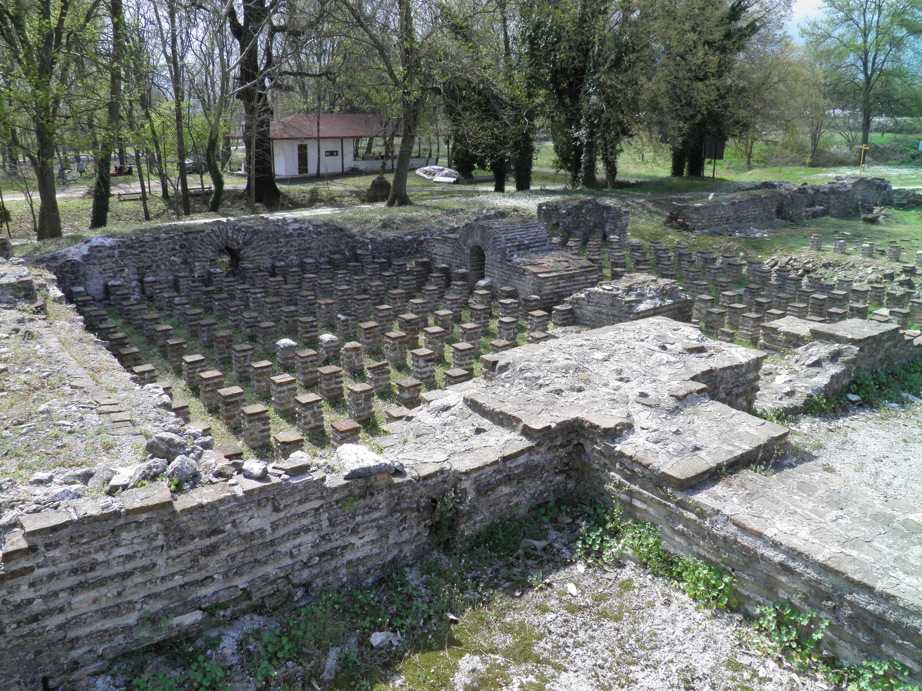 The Great Thermal Baths were the largest and most lavish baths built in Roman Dion in Macedonia (Greece). They were built in the late 2nd century CE and abutted the southern city wall. The extensive underfloor hypocaust heating system and false walls made of terracotta pipes allowed hot air to circulate throughout the rooms.