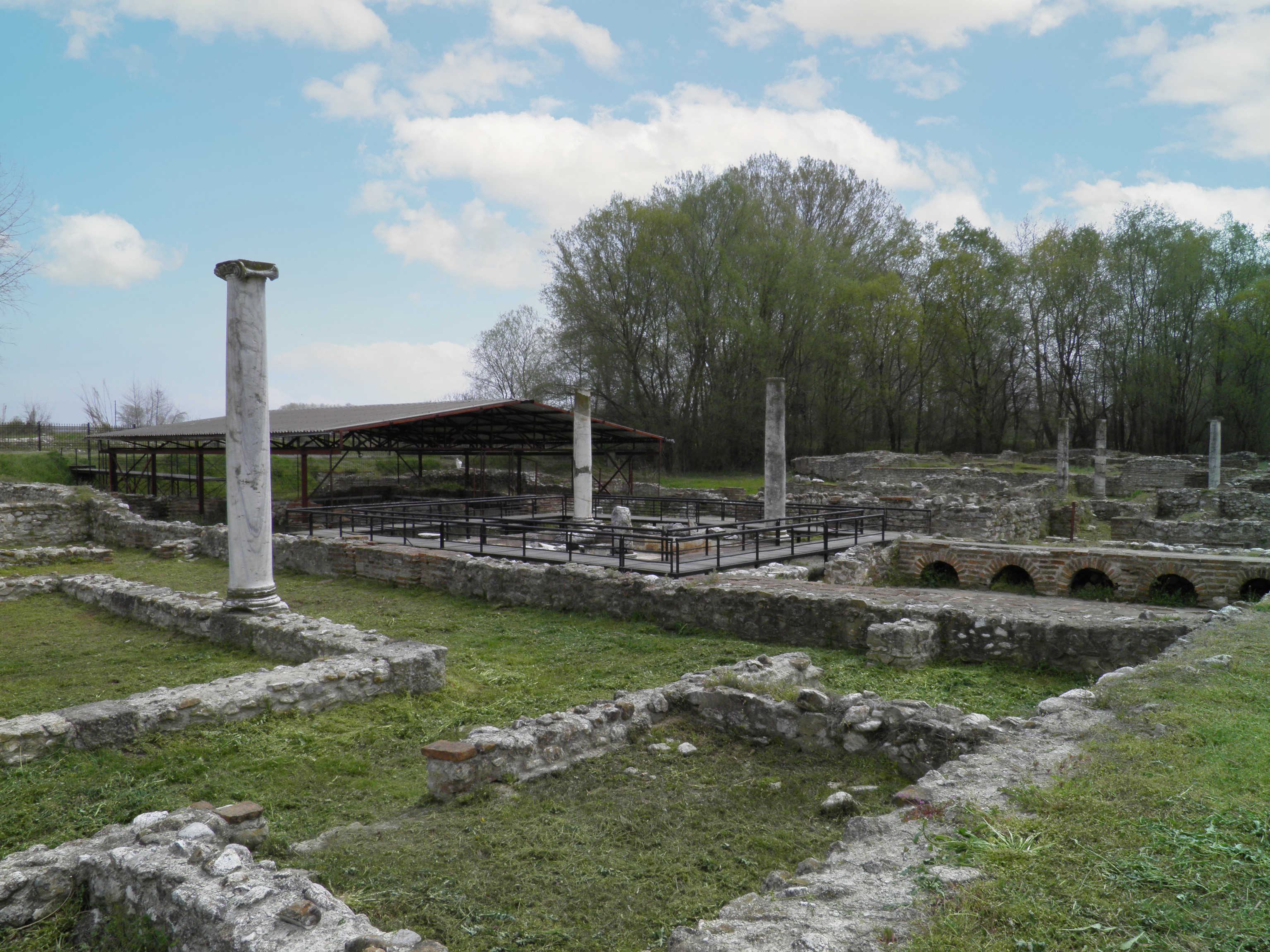 The Dionysus Villa in Dion in Macedonia (Greece) is a sprawling, luxurious private residence dating to the 2nd century CE. The villa complex was originally built with five interconnecting tetrastyle courtyards and atrium gardens. It was modified in the 3rd century CE to divide it into three connected villas. The complex of buildings includes a bathhouse, shrine to Dionysus, shops, and an array of domestic rooms.
