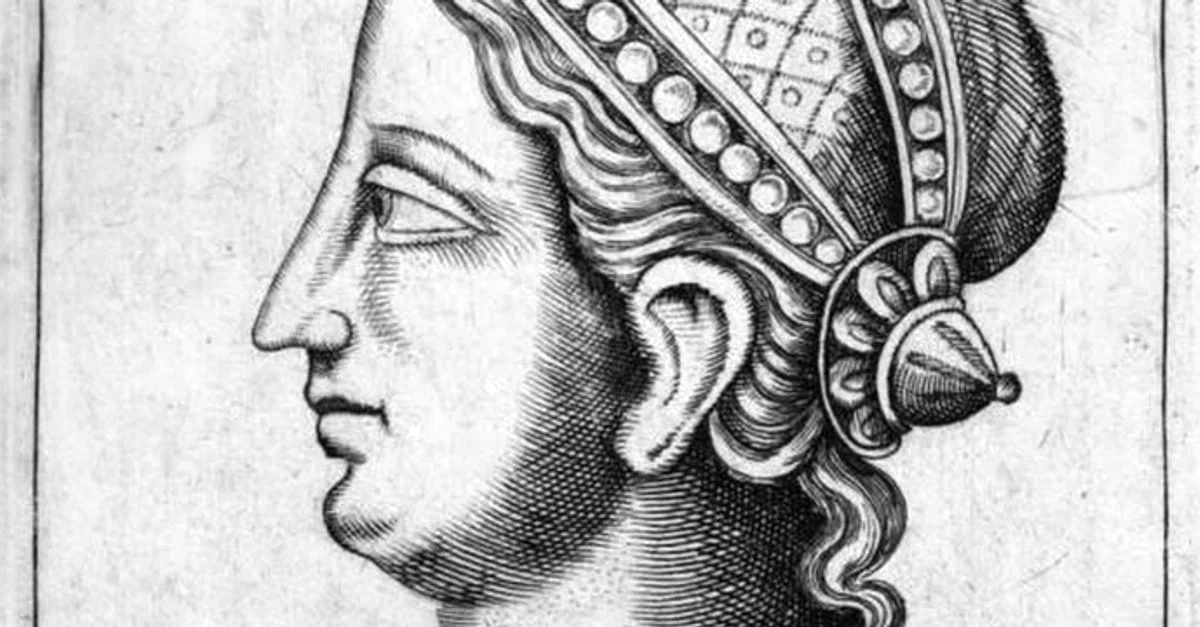 An early modern reimagining of the philosopher Hipparchia of Maroneia (l. c. 350 – 280 BCE). From the 1580 CE book Illustrium philosophorum et sapientum effigies ab eorum numistatibus extractae, by Girolamo Olgiati. Reprinted 1583.