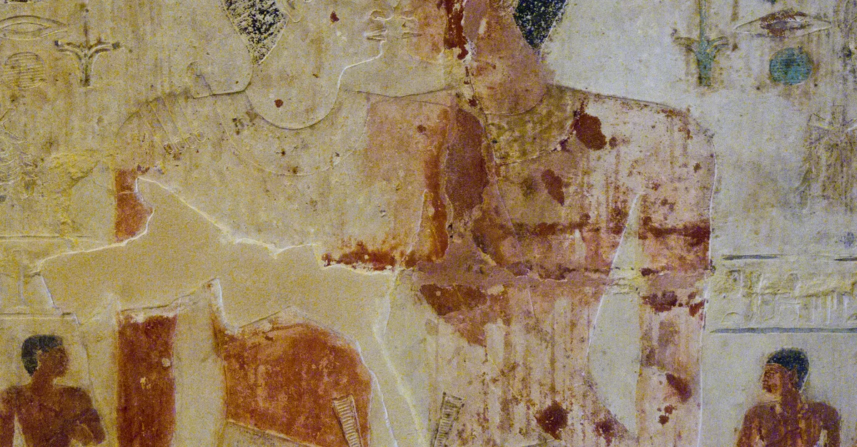 Wall painting from the tomb of Khnumhotep and Niankhkhnum, two royal officials who have been identified as possibly brothers or a same-sex couple. Saqqara, Egypt, reign of Nyuserre Ini, late 25th century BCE.