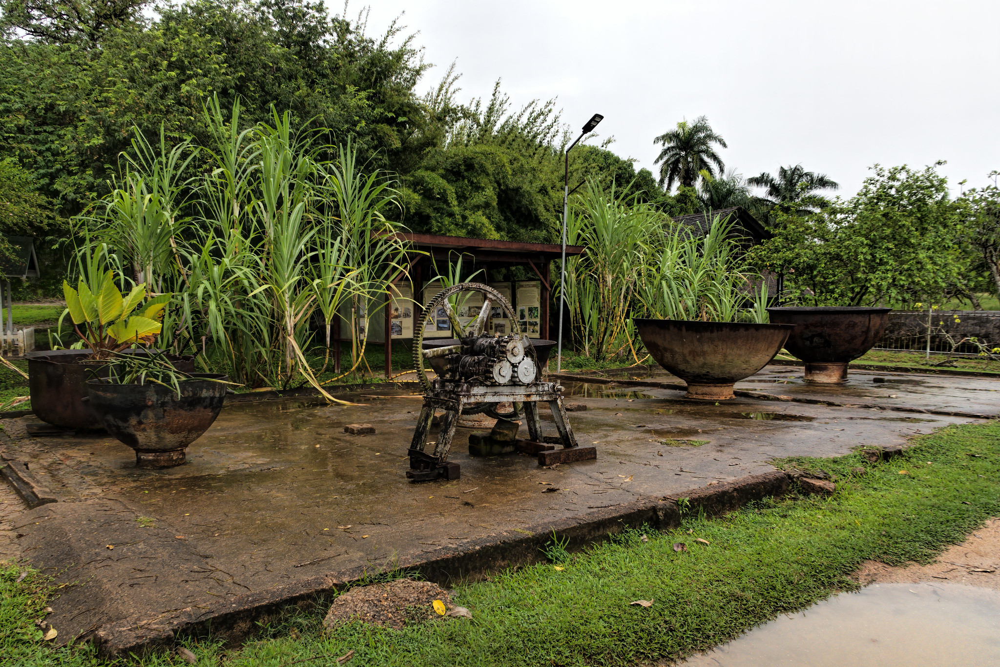 Sugar processing display, Fort Nieuw-Amsterdam Open-Air Museum, Suriname.