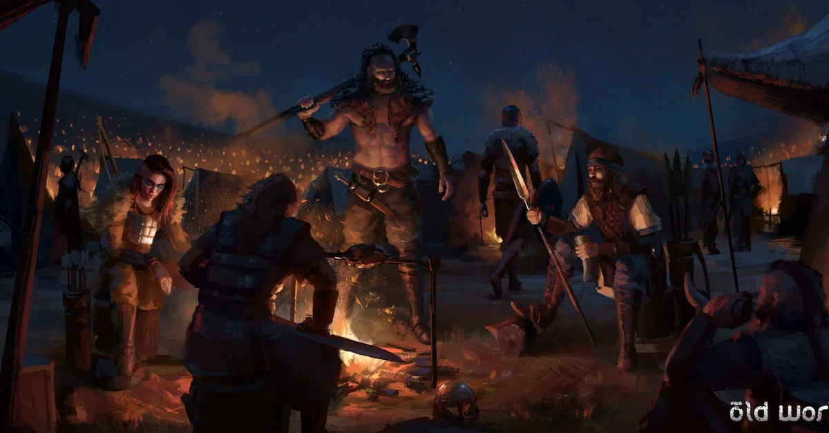 Artist's impression depciting a military encampment in Northern Europe during the Middle Ages or Late Antiquity. No specific culture is depicted, but it could be Vikings, Anglo-Saxons, Goths, or warriors of later Medieval European kingdoms.