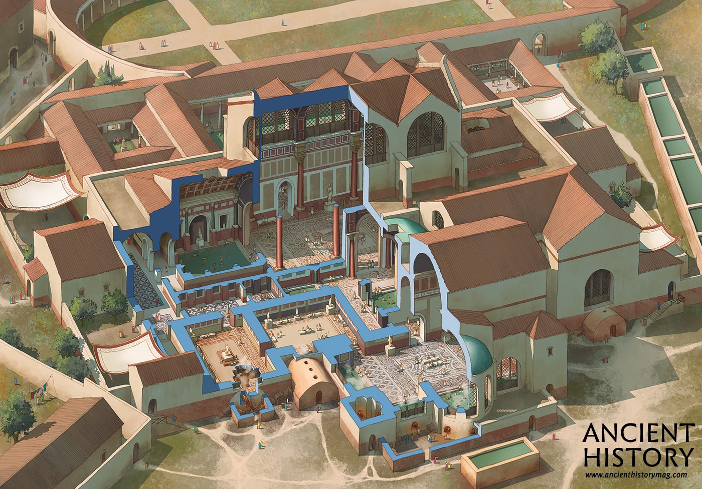 Artist's depiction of the bathouse complex at Leptis Magna, by Rocío Espin.