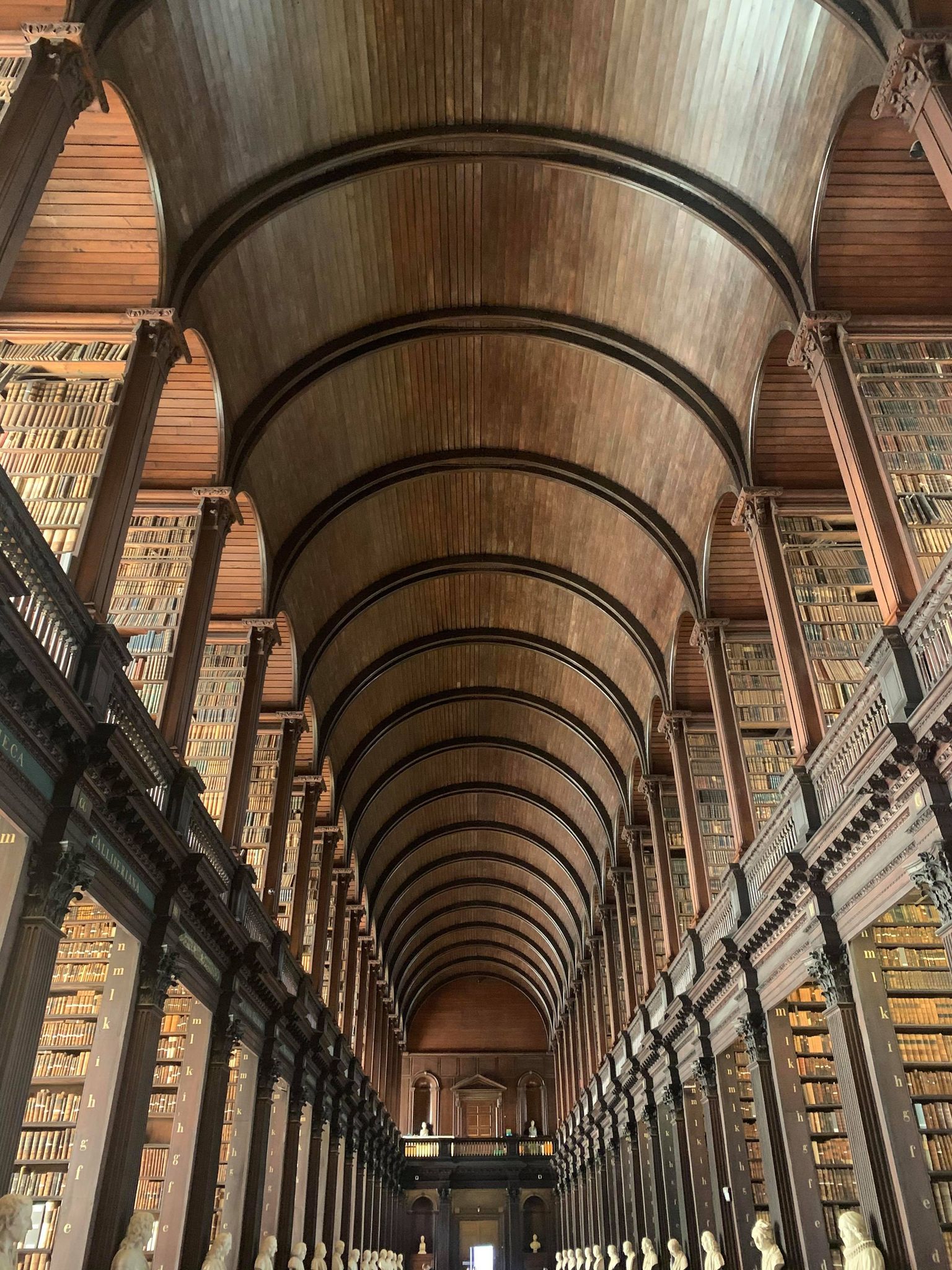 The Long Room is the main chamber of the old library of Trinity College. The room was built between 1712 and 1732, while the roof was raised in 1860 to make room for more books, giving the Long Room its iconic appearance.