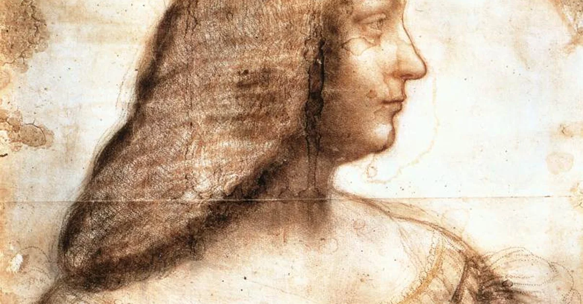 Chalk on paper portrait of Isabella d'Este, the Marchioness of Mantua by Leonardo da Vinci, c. 1500 CE.