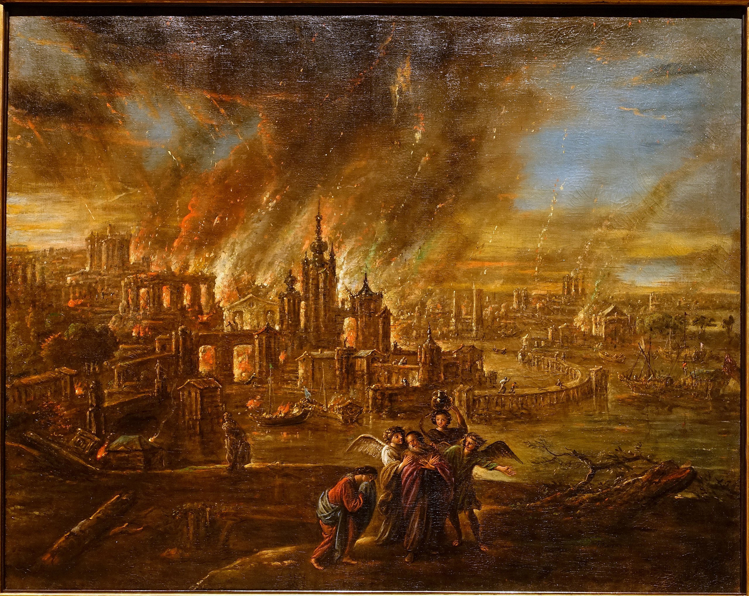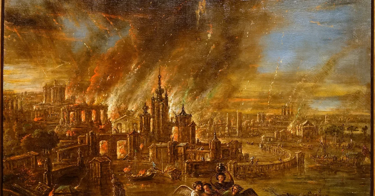 Sodom and Gomorrah afire, painting by Jacob de Wet II, 1680.