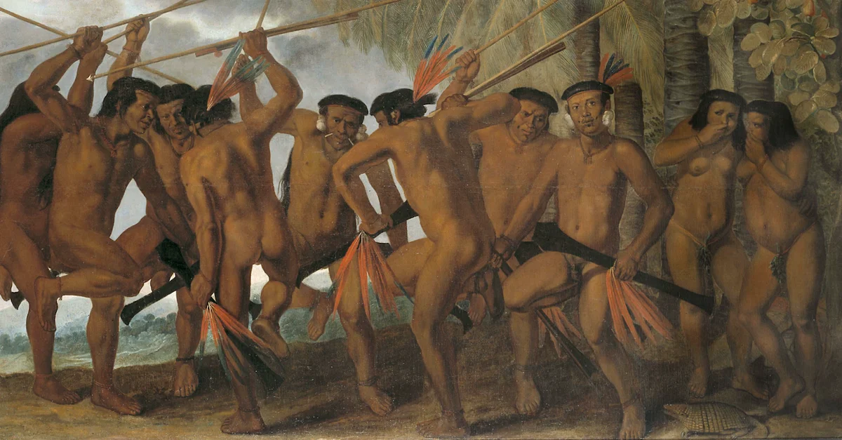 A 17th-century painting by Albert Eckhout showing dancing Tapuias, an indigenous tribe of Brazil. (National Museum of Denmark, Copenhagen)