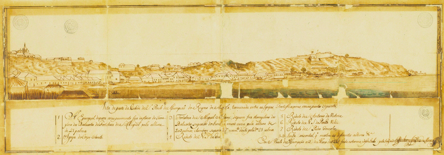 A 1755 illustration of the port of Luanda, capital of the colony of Portuguese Angola and capital of today's Angola. Luanda was one of the major points of assembly for African slaves destined for the Americas.