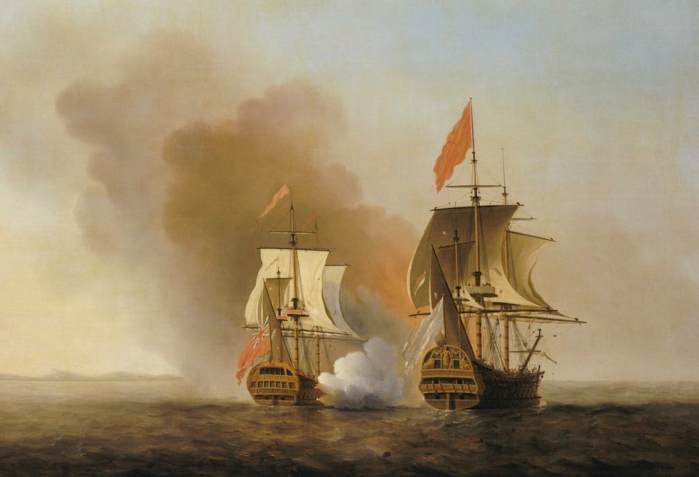 A detail of the Capture of the Spanish galleon Nuestra Señora de Cavadonga by the British ship HMS Centurion, a 1743 oil panting by Samuel Scott. (Royal Museum, Greenwich, London)