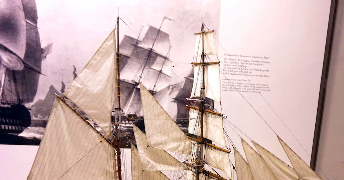 A model of a brigantine ship. With two masts which were traditionally gaf-rigged and lateen-rigged, the ship was fast and highly manoeuvrable, making the brigantine a favourite ship of pirates. (Deutsches Museum, Munich)