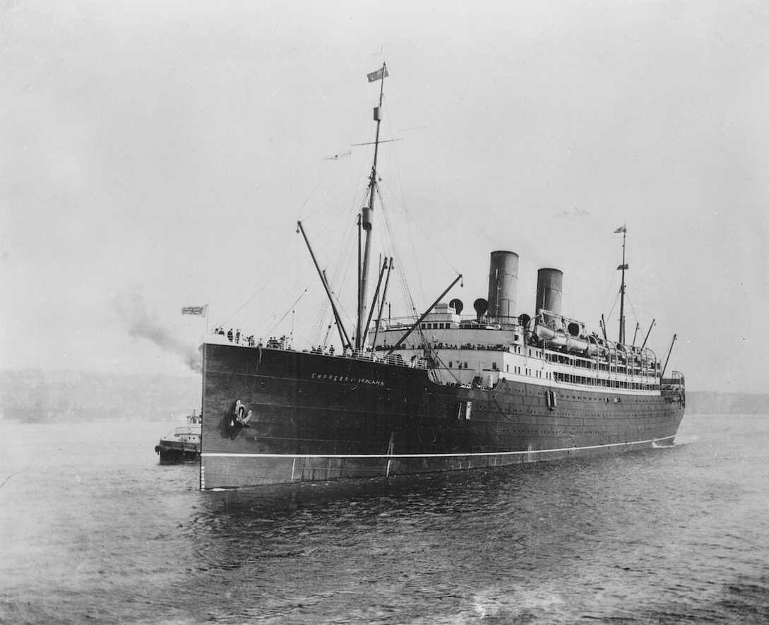 A view of the RMS Empress of Ireland at sea which sank after a collision in May 1914. (Library and Archives Canada, PA-116389)