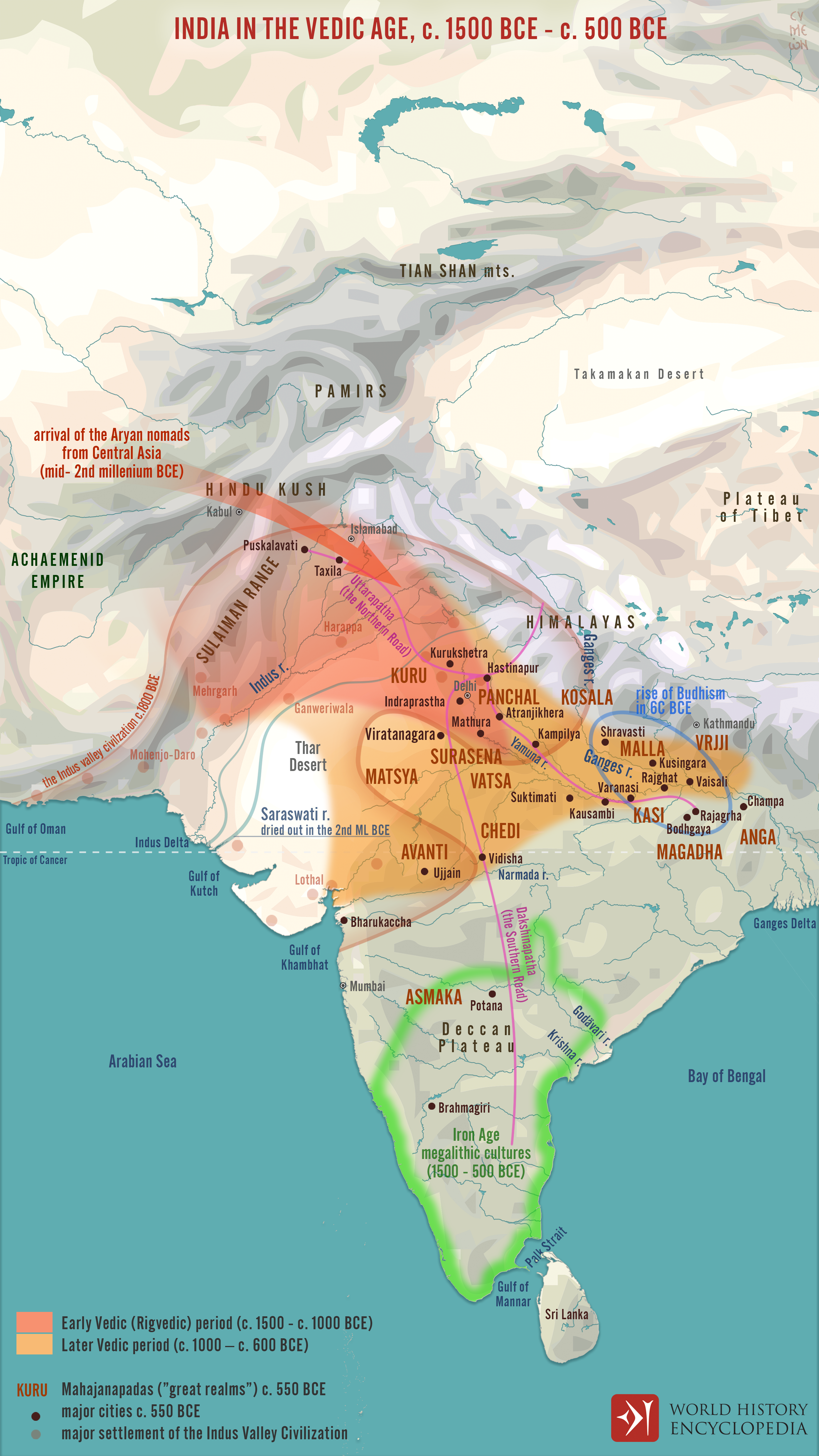 Netchev, S. (2021, August 31). India in the Vedic Age, 1500 BCE-500 BCE. World History Encyclopedia. https://www.worldhistory.org/image/14540/india-in-the-vedic-age-1500-bce-500-bce/