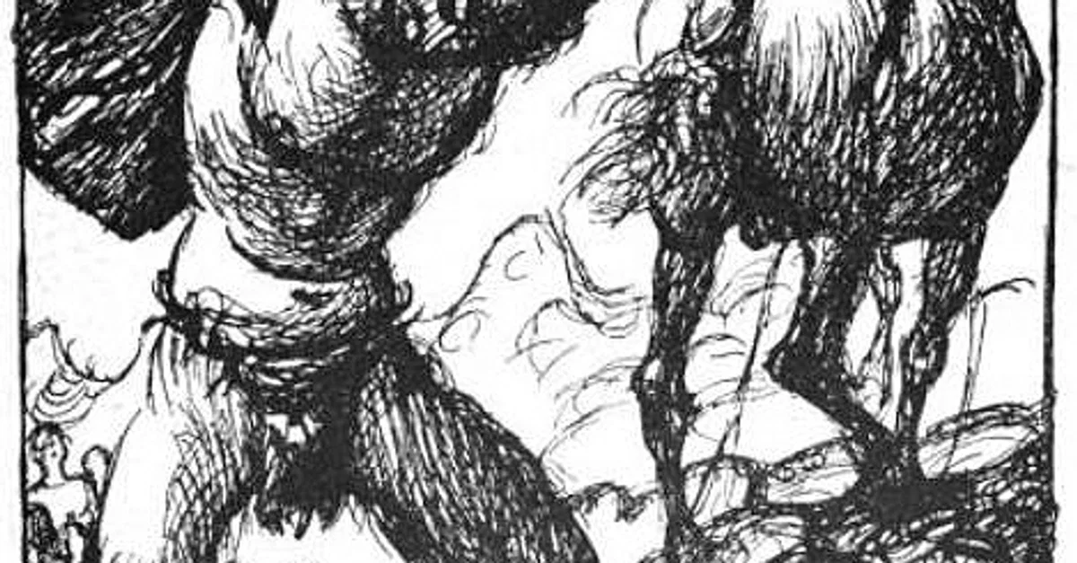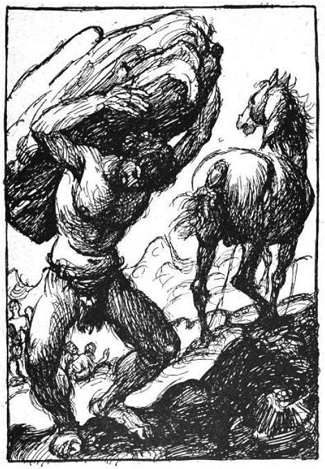 A depiction of the jötunn master-builder and his horse Svadilfari by Robert Engels, published in Germaniens Götter by Rudolf Herzog, Quelle & Meyer, Leipzig, 1919.