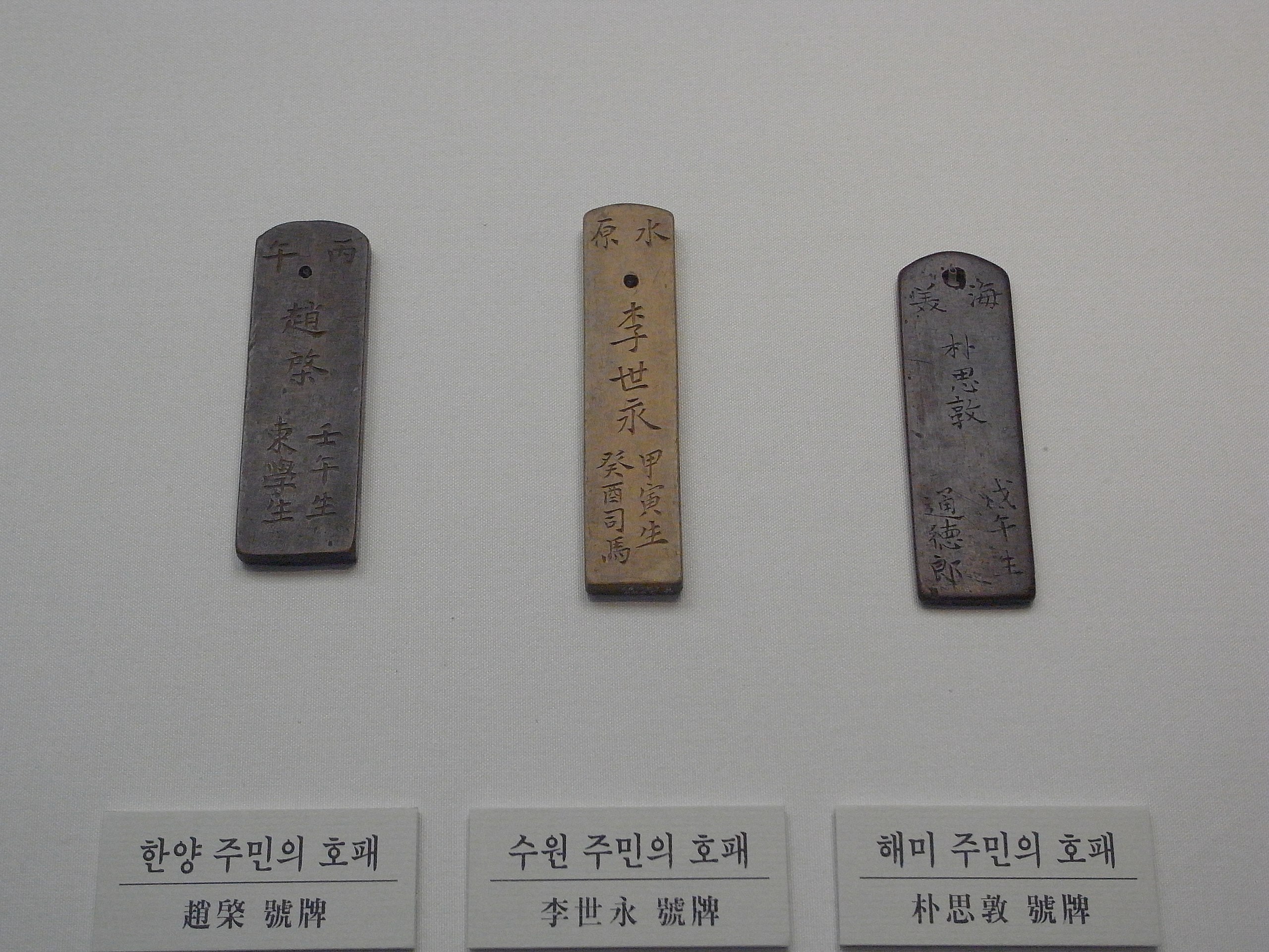 Hopae identification tablets carried by all males over 16 during the Joseon Dynasty (1392-1897).