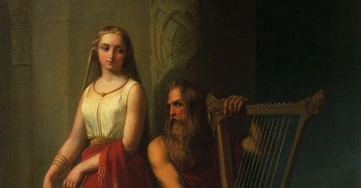 Idun and Brage, oil on canvas painting by the Swedish artist Nils Blommér, 1846.