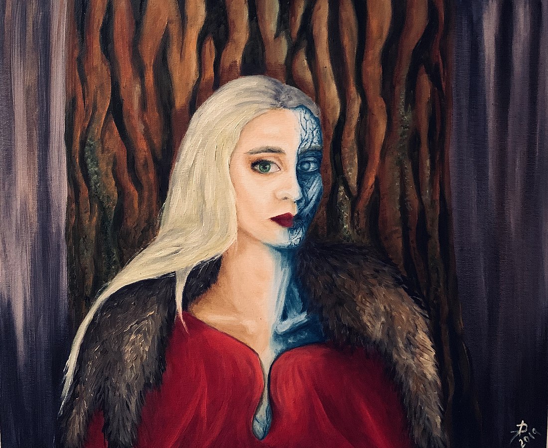Hel, queen of the underworld in Norse mythology, artwork by Mkasahara, 2019.