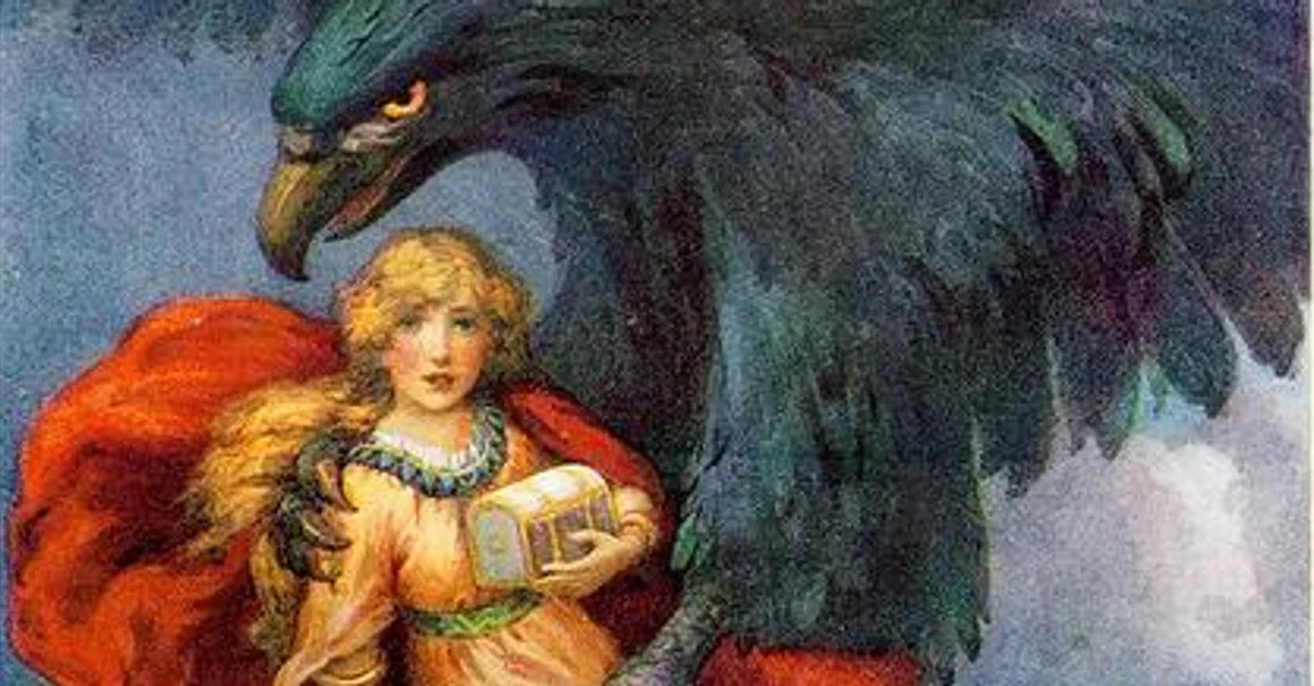 An illustration portraying the Norse goddess of fertility Idunn being kidnapped by the giant Thiassi. Idunn was a guardian of the fruit (usually given as apples) that kept the gods of Asgard eternally young. Due to its rejuvenating properties, the fruit was an object of desire of multiple characters who desperately wanted to get it. One of them was a giant Thiassi. He deceitfully kidnapped Idunn taking the form of the falcon. When she was kidnapped, the gods began to age and her rescue from the realm of Jotunheim (the location of giants) was of the utmost importance. Finally, she was released by the trickster Loki. From that time gods could enjoy youth till the times of the Ragnarök.