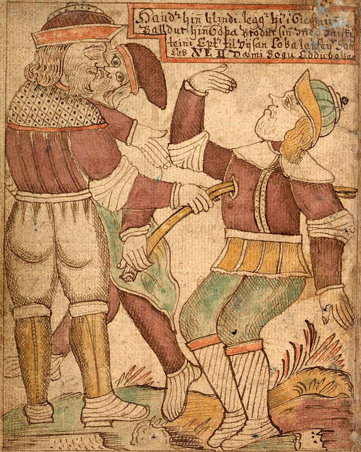 Death of the Nose god Baldr, illustration from an 18th-century Icelandic manuscript.