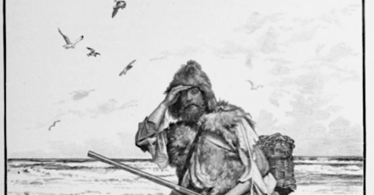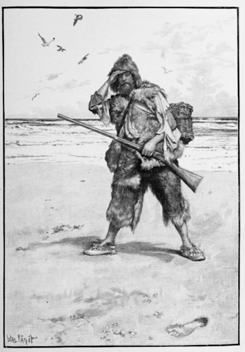 An illustration by Walter Paget of Robinson Crusoe which appeared in an 1895-6 edition of Daniel Defoe’s novel Robinson Crusoe, first published in 1719. The character was inspired by Alexander Selkirk, marooned on the Juan Fernández Islands from 1704 to 1709.