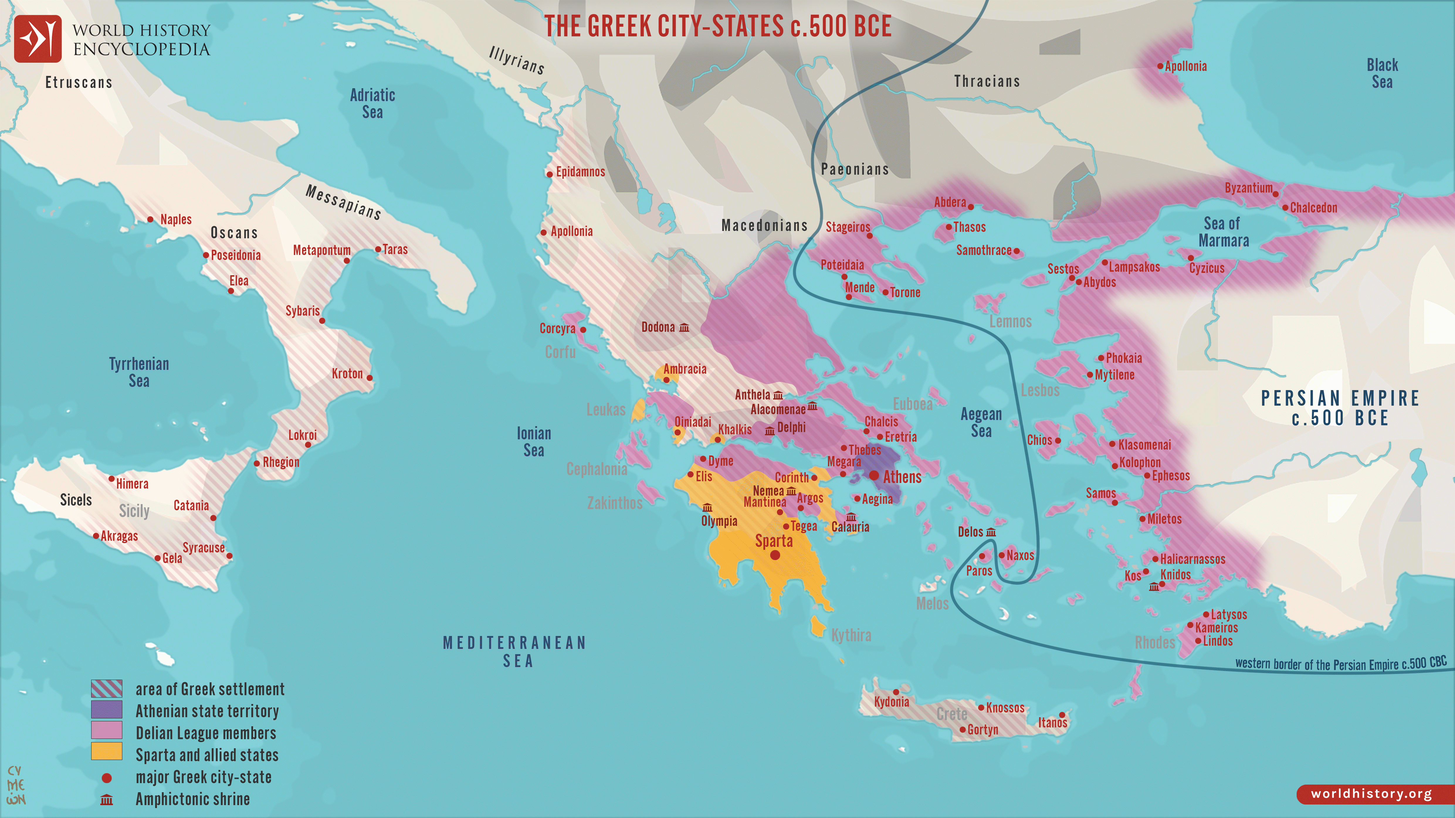 Netchev, S. (2021, September 15). Map of the Greek City-states c. 500 BCE. World History Encyclopedia. https://www.worldhistory.org/image/14624/map-of-the-greek-city-states-c-500-bce/