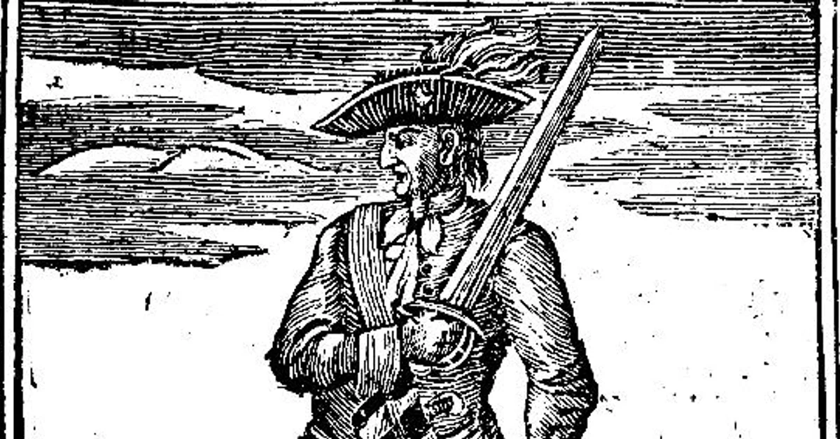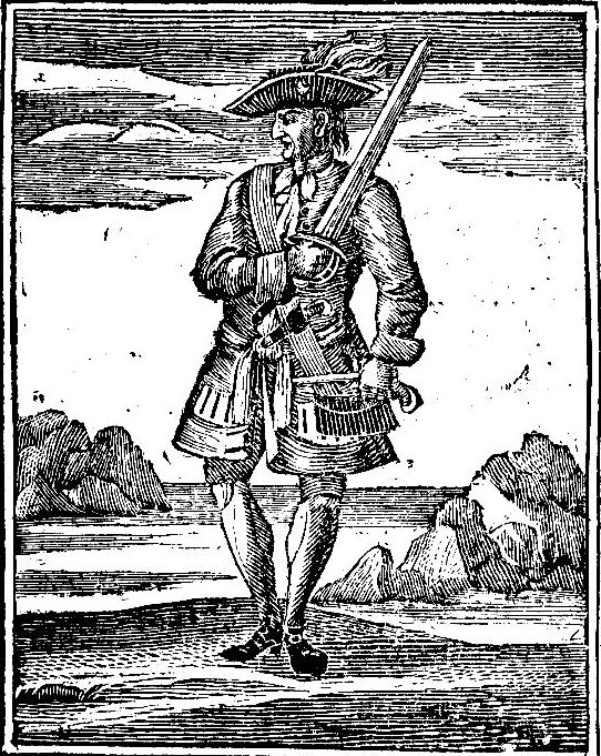 An early 18th-century print of the English pirate John Rackham, otherwise known as 'Calico Jack' (d. 1720). The illustration appeared in an early edition of A General History of the Robberies and Murders of the Most Notorious Pyrates by Captain Charles Johnson.