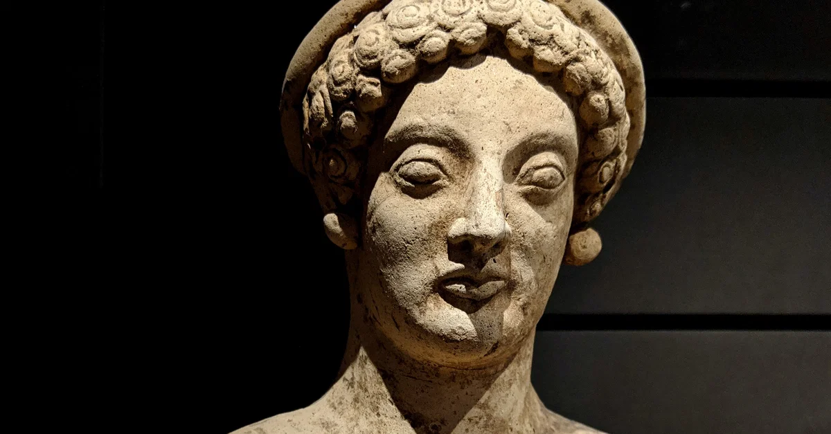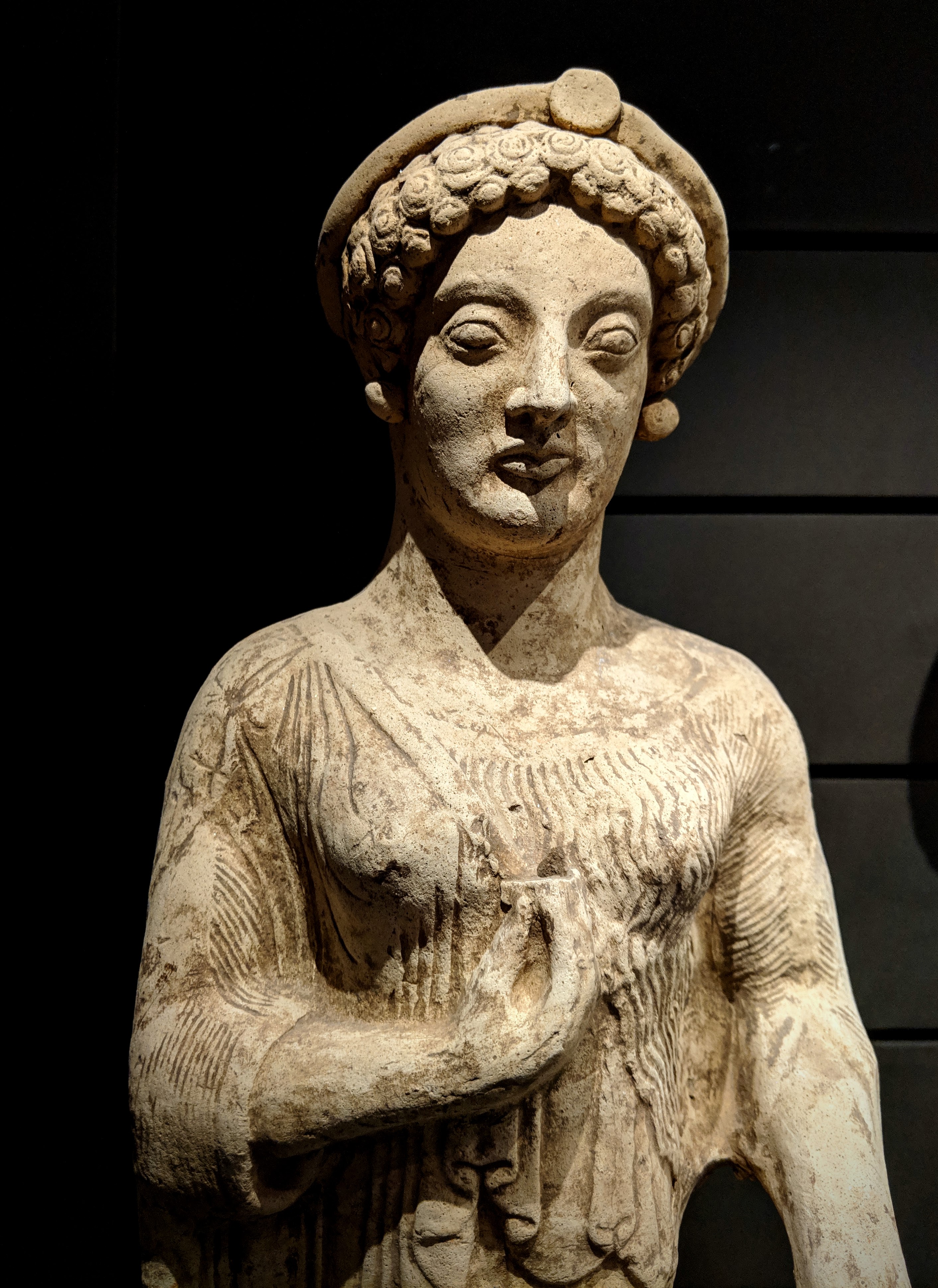 Female terracotta statue from Magna Graecia, made in Medma (modern-day Italy), 480-460 BCE.
