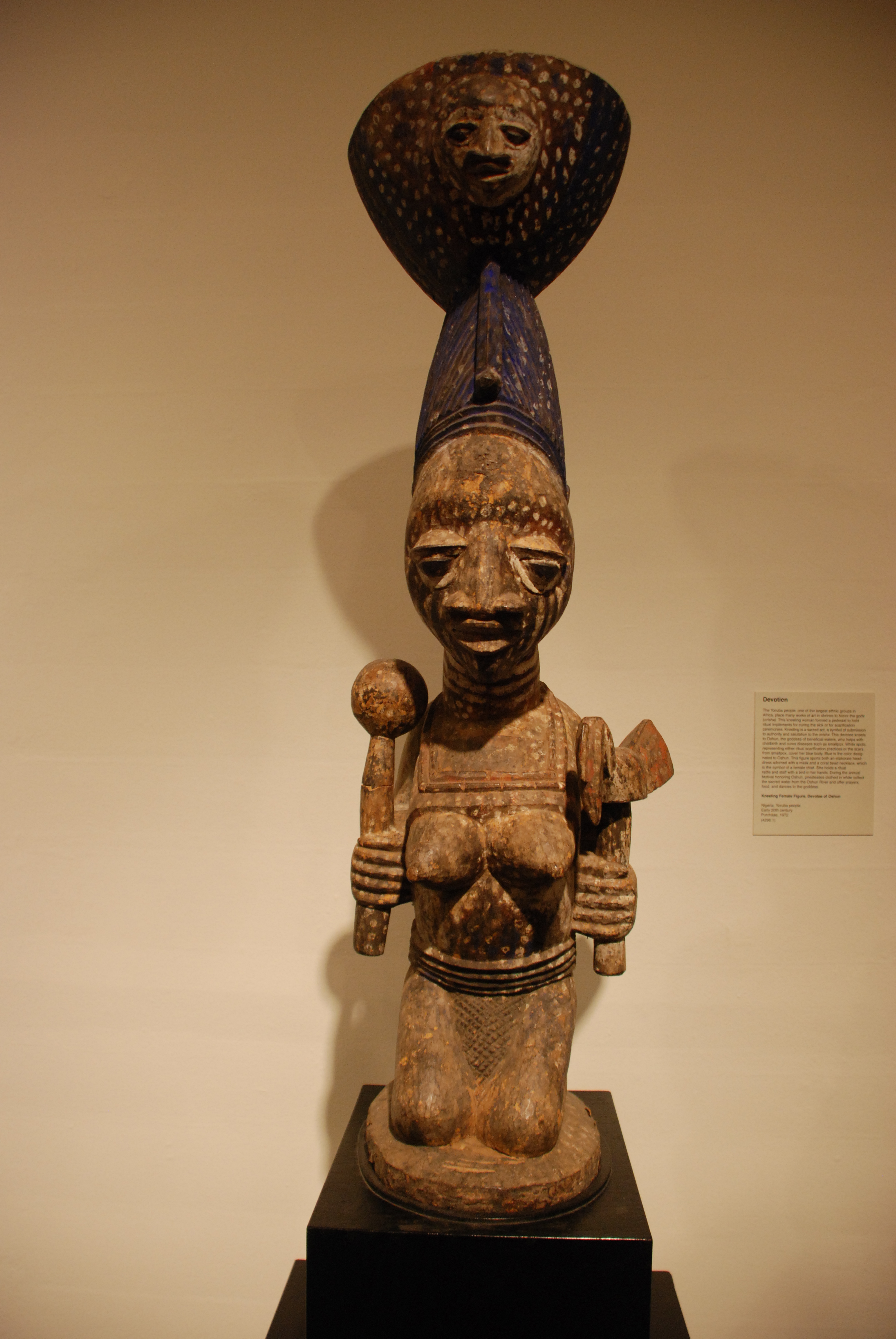 A devotee of Oshun, carved wood kneeling female figure. Yoruba people, Nigeria, early 20th century.
