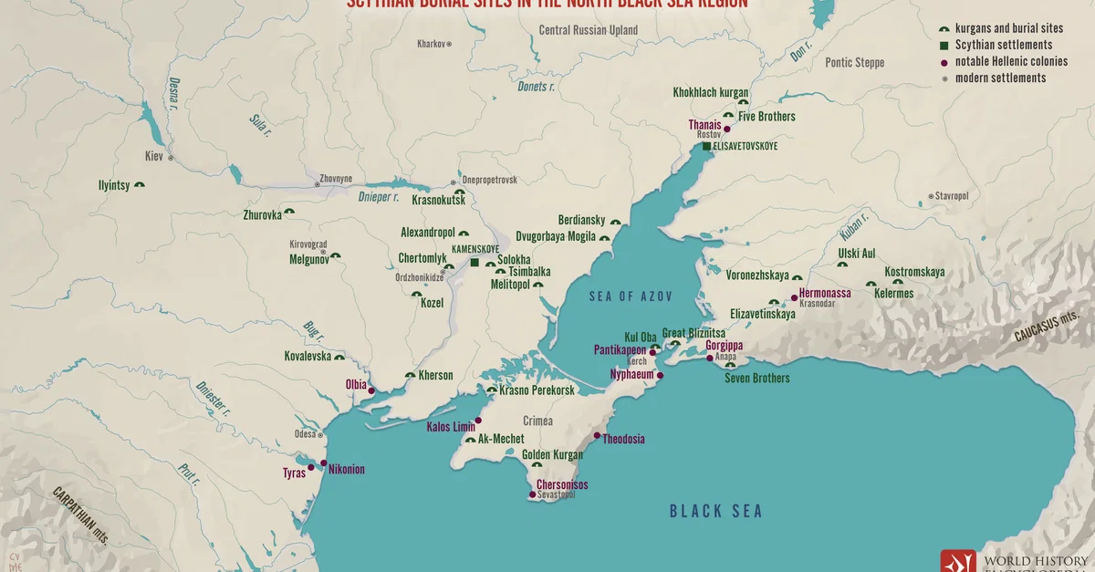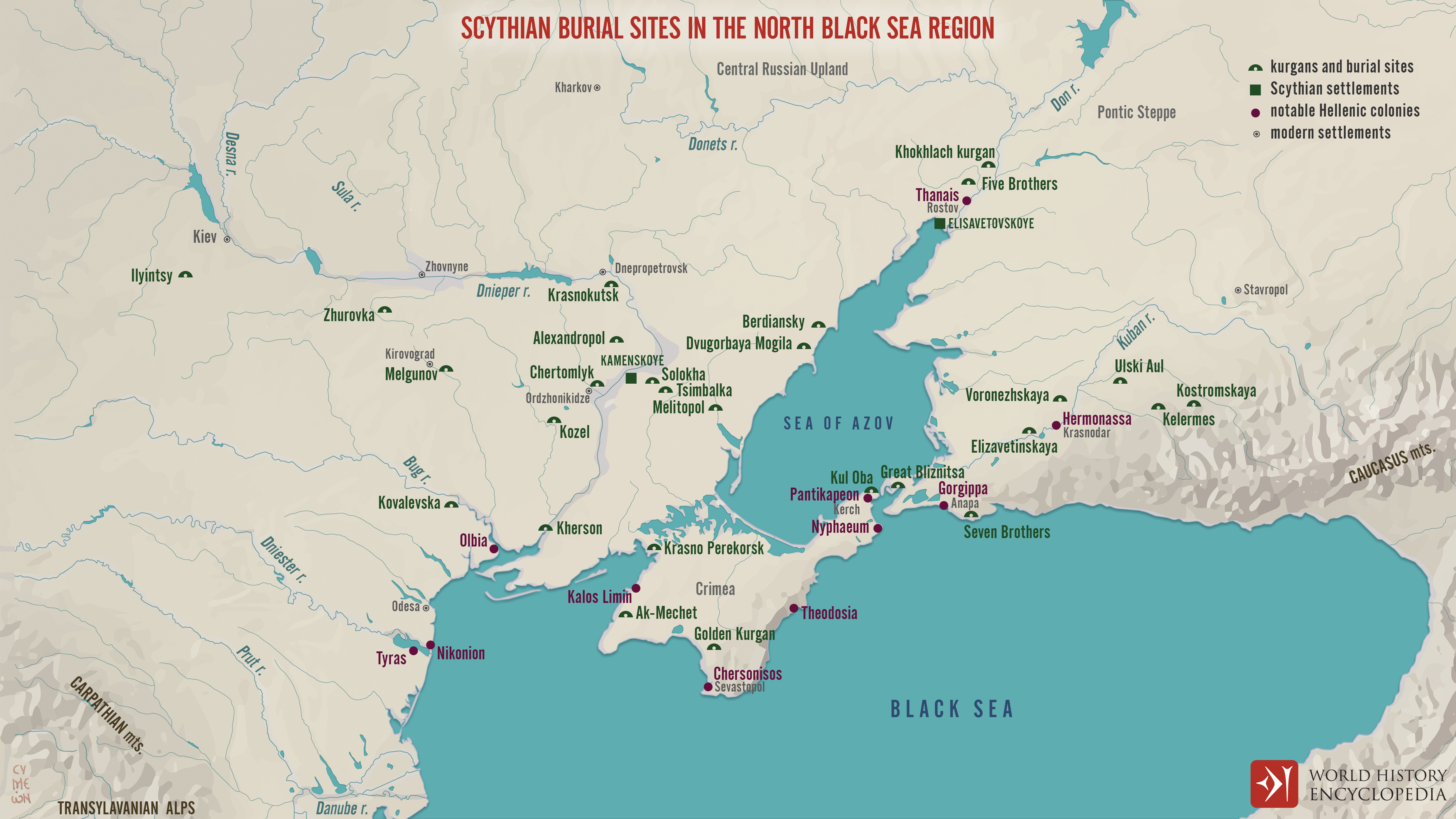 Netchev, S. (2021, October 05). Scythian Burial Sites in the North Black Sea Region. World History Encyclopedia. https://www.worldhistory.org/image/14688/scythian-burial-sites-in-the-north-black-sea-regio/