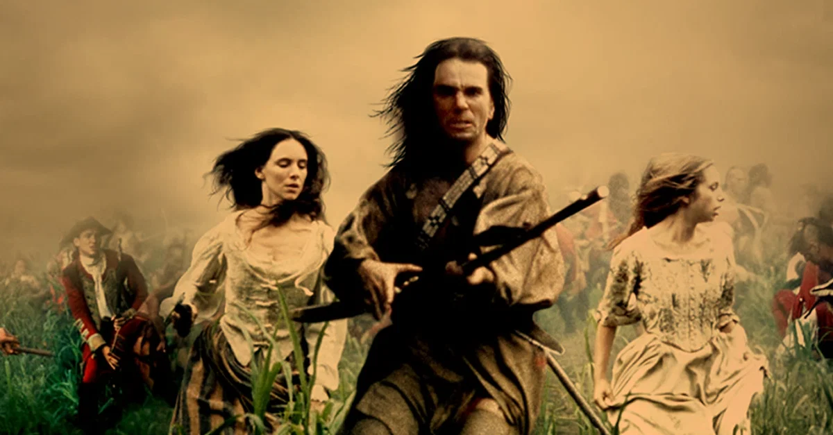 Daniel Day-Lewis, Madeleine Stowe, and Jodhi May in The Last of the Mohicans (1992). Photo by Morgan Creek Productions