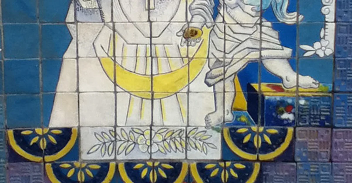 Detail of the mural by Said Musa, presenting Yemaya, an Orisha from Yoruba religion. In Catholic Central and South America and the Caribbean, Yoruba religion became syncretized with Christianity and Yemaya was associated with the Virgin Mary.