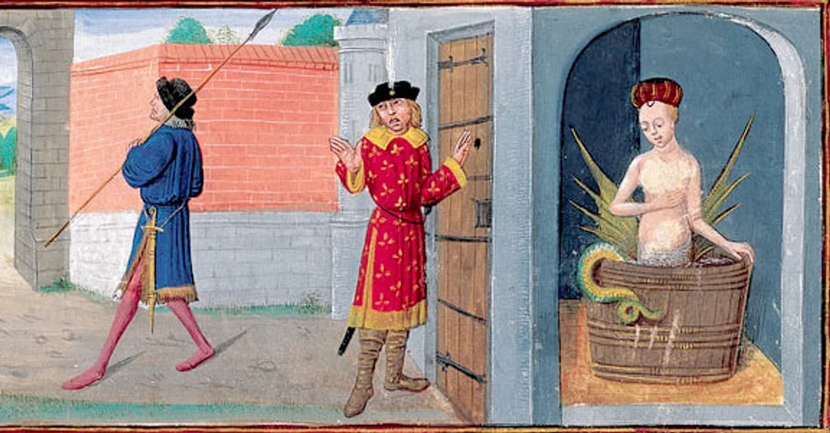 Melusine's secret discovered, illustration from folio 19 of the illuminated manuscript Français 24383 of The Romance of Melusine by Jean d'Arras, 15th century.