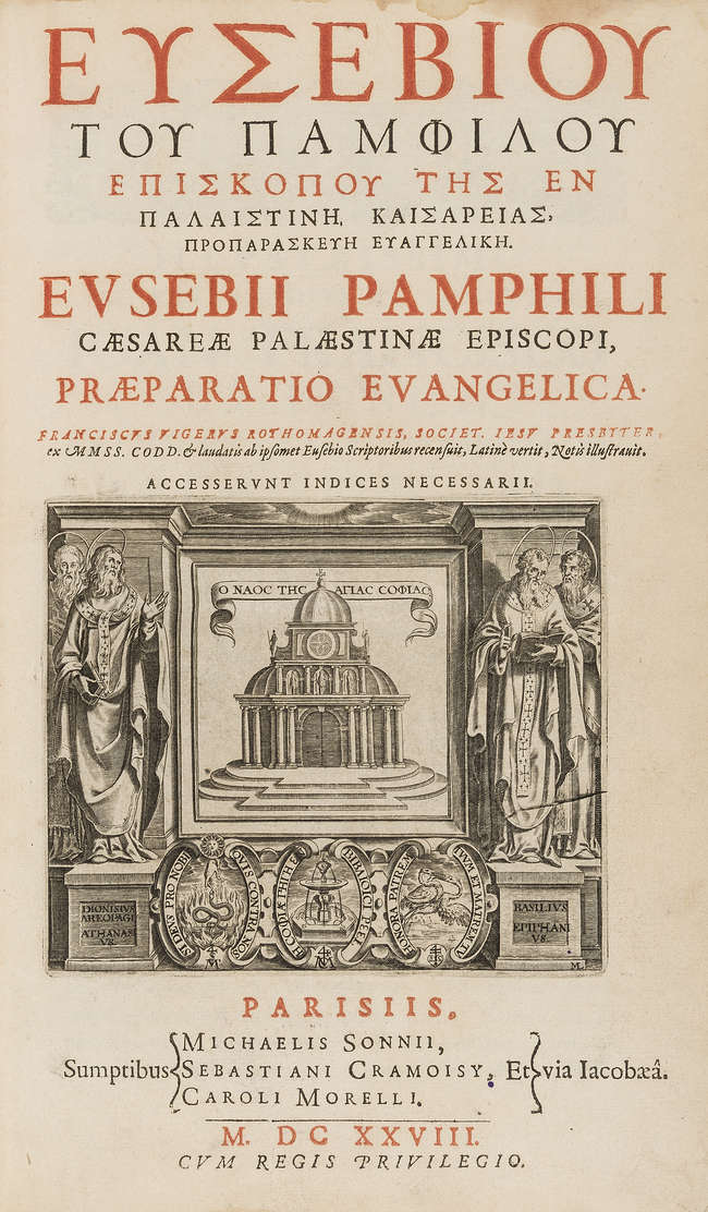 Eusebius' Preparation for the Gospel, edited by Franciscus Vigerus, published by Michael Sonnius, Sebastian Cramoisy & Charles Morel, Paris, 1628.