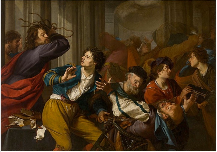 Christ Driving the Money-changers from the Temple, oil on canvas painting by Theodoor Rombouts (1597-1637)