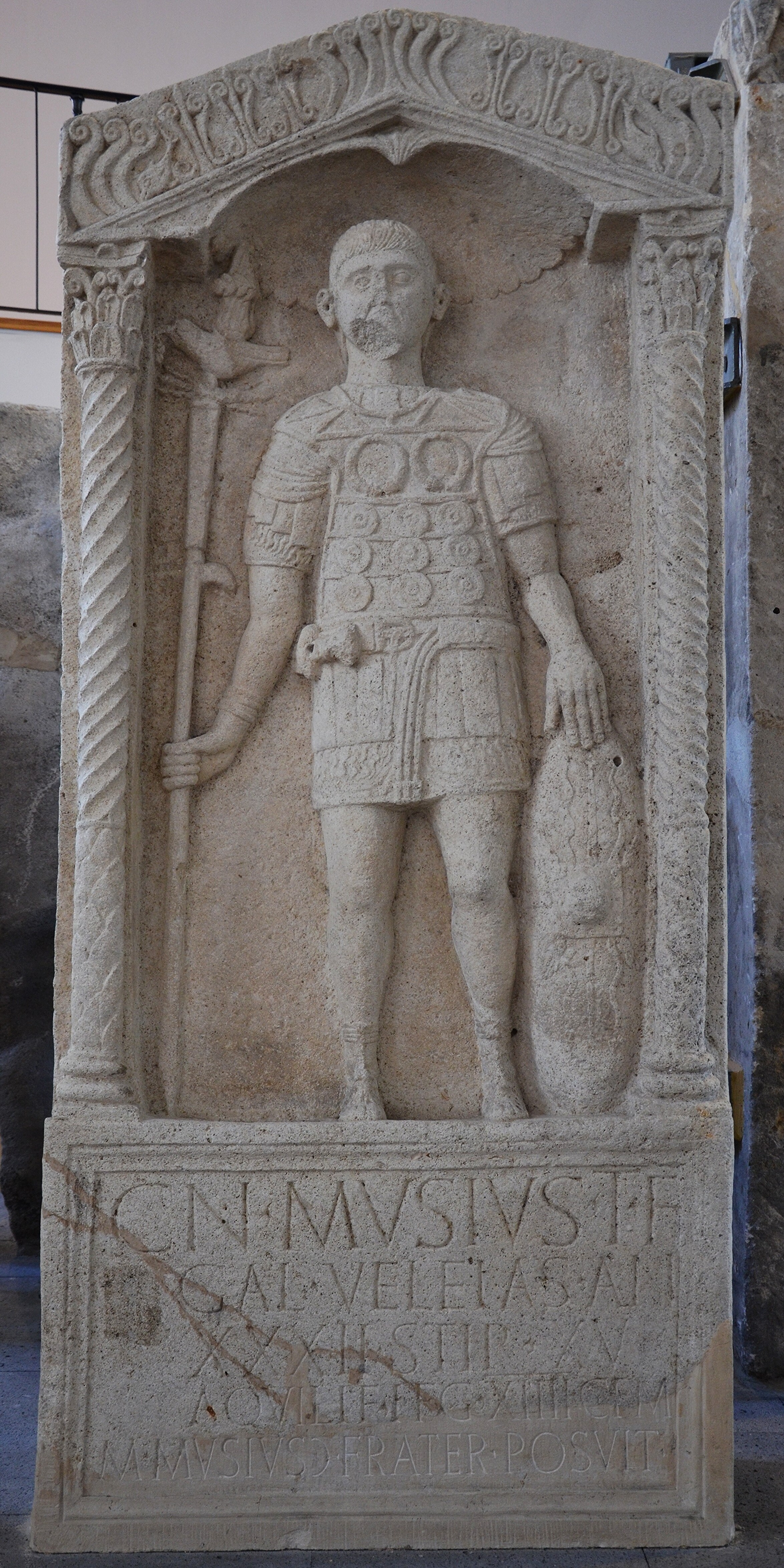 Tombstone of Gnaeus Musius, standard-bearer of Legio XIV Gemina, 1st century CE.