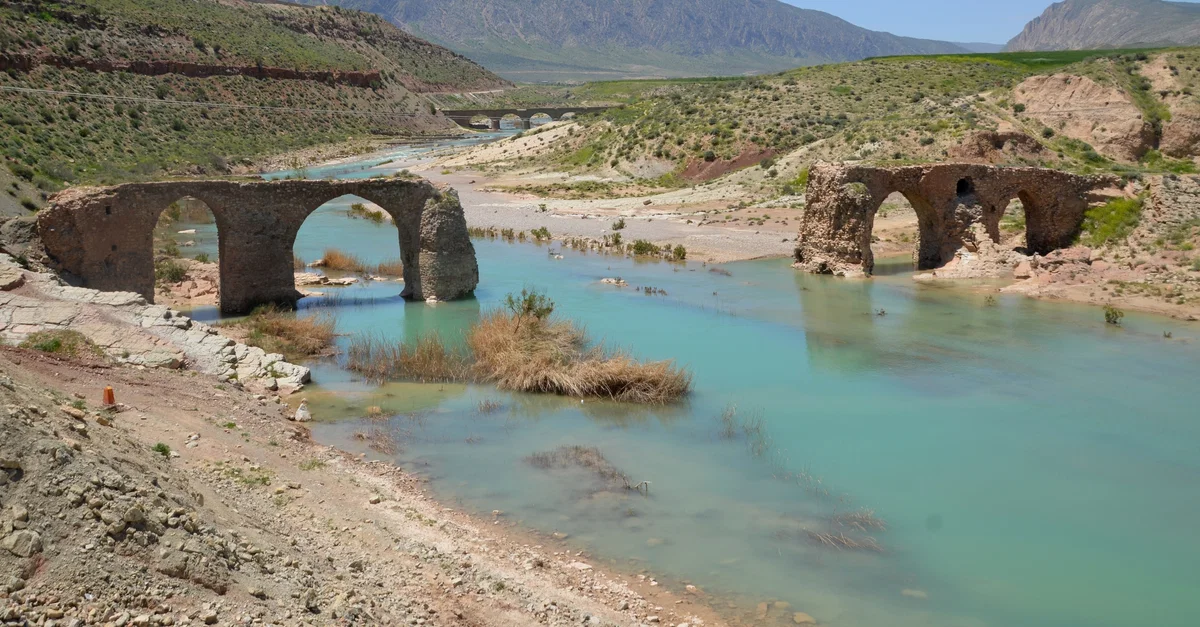 Early Sasanian bridge (Kavar bridge) spanning the Qara Aqaj River near Firuzabad in Iran. It was built in the 3rd century CE, possibly by Romans who were taken captive during the campaigns of Shapur I (r. 240-270 CE).