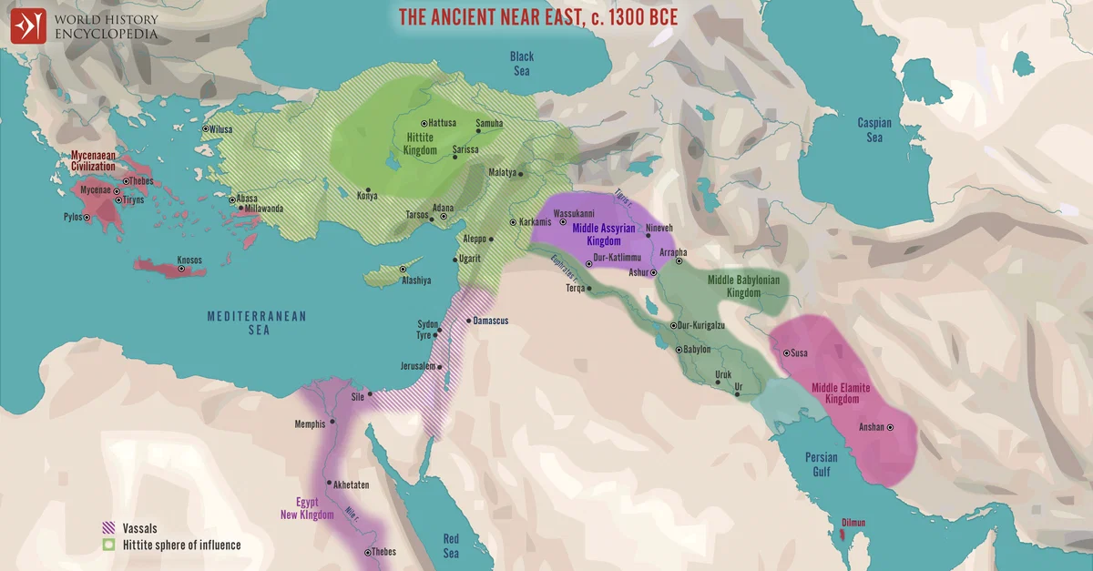 Netchev, S. (2021, November 15). The Ancient Near East, c. 1300 BCE: On the Eve of Collapse: Power and Politics in the Late Bronze Age. World History Encyclopedia. https://www.worldhistory.org/image/14813/the-ancient-near-east-c-1300-bce/