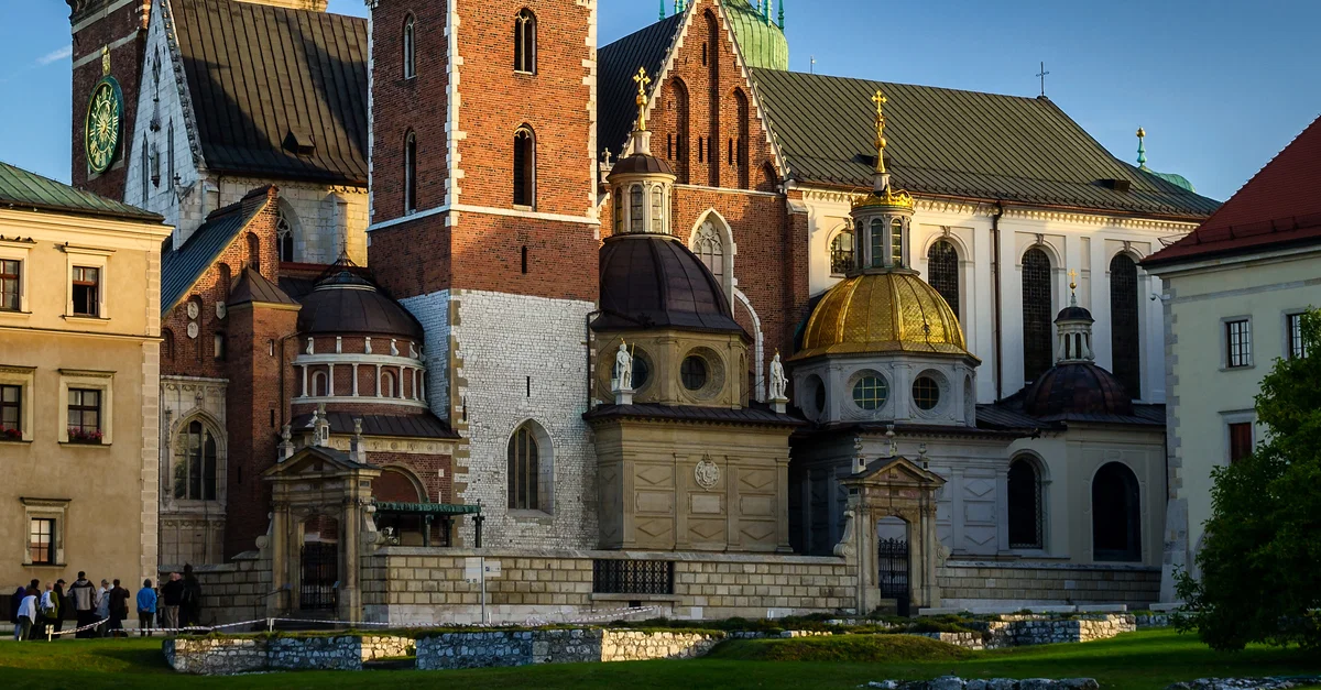 A photo of Wawel Cathedral. Wawel Cathedral is a 14th century cathedral located on Wawel Hill in Cracow, Poland. It was the place of coronations of many Polish monarchs.