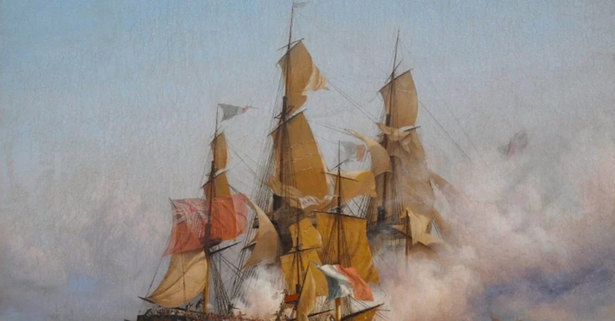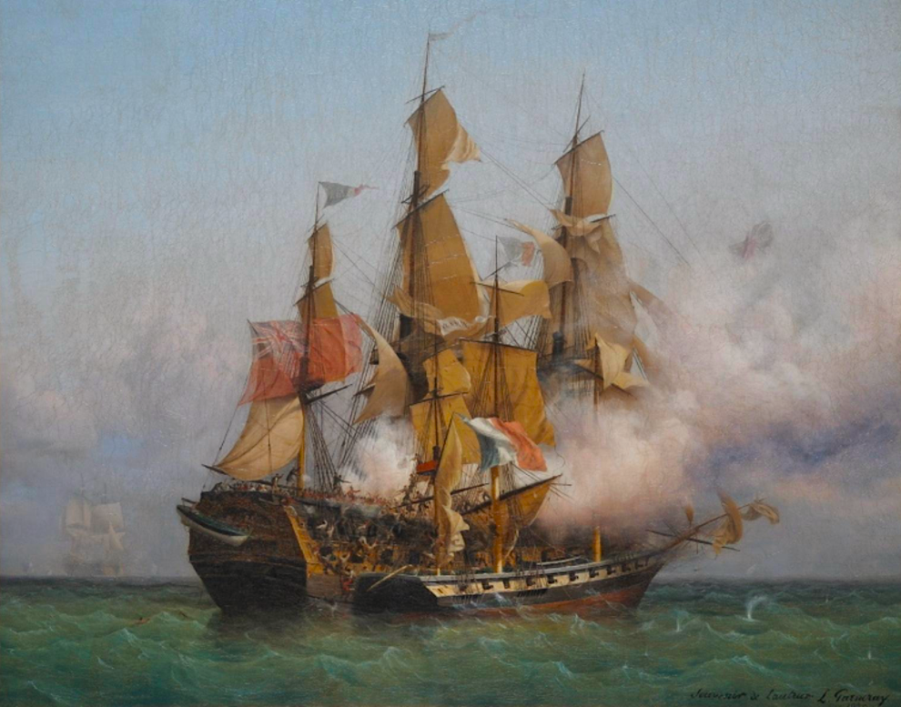 A c. 1850 painting by Ambroise Louis Garneray showing the 1800 battle between the Confiance captained by the French privateer Robert Surcouf and the Kent. (Musée d'Histoire de Saint-Malo, France)