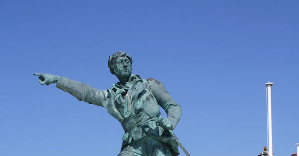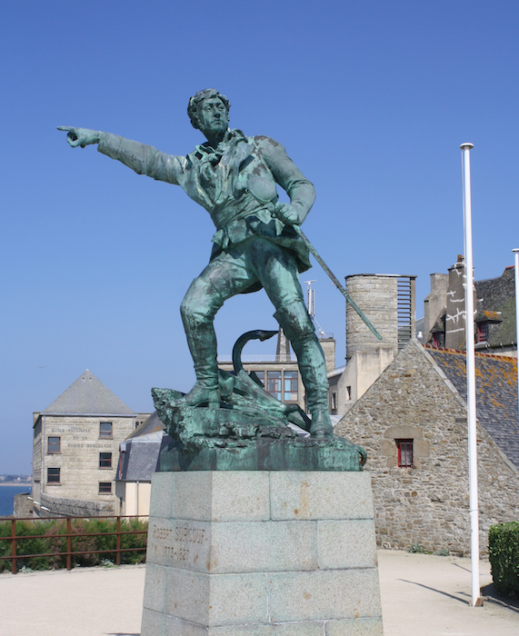 A statue of the French privateer Robert Surcouf (active 1794-1810), Saint-Malo, France. Sculpted by Alfred Caravanniez.