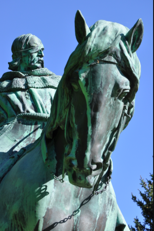 A detail of an equestrian statue of the Czech hero Jan Zizka (l. c. 1360 – 1424), a highly successful general during the Hussite Wars (1419-c. 1434). (Přibyslav, Czech Republic)