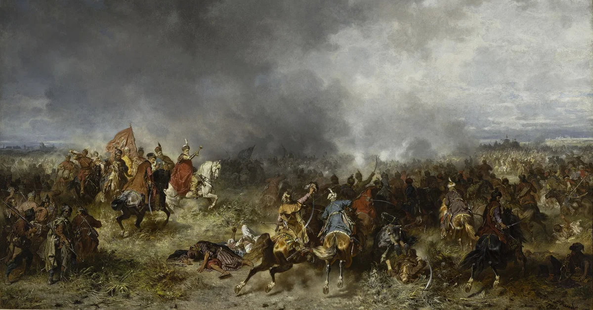 The Battle of Khotyn (1621), oil on canvas painting by Józef Brandt, depicting Jan Karol Chodkiewicz (on the white horse), 1867.
