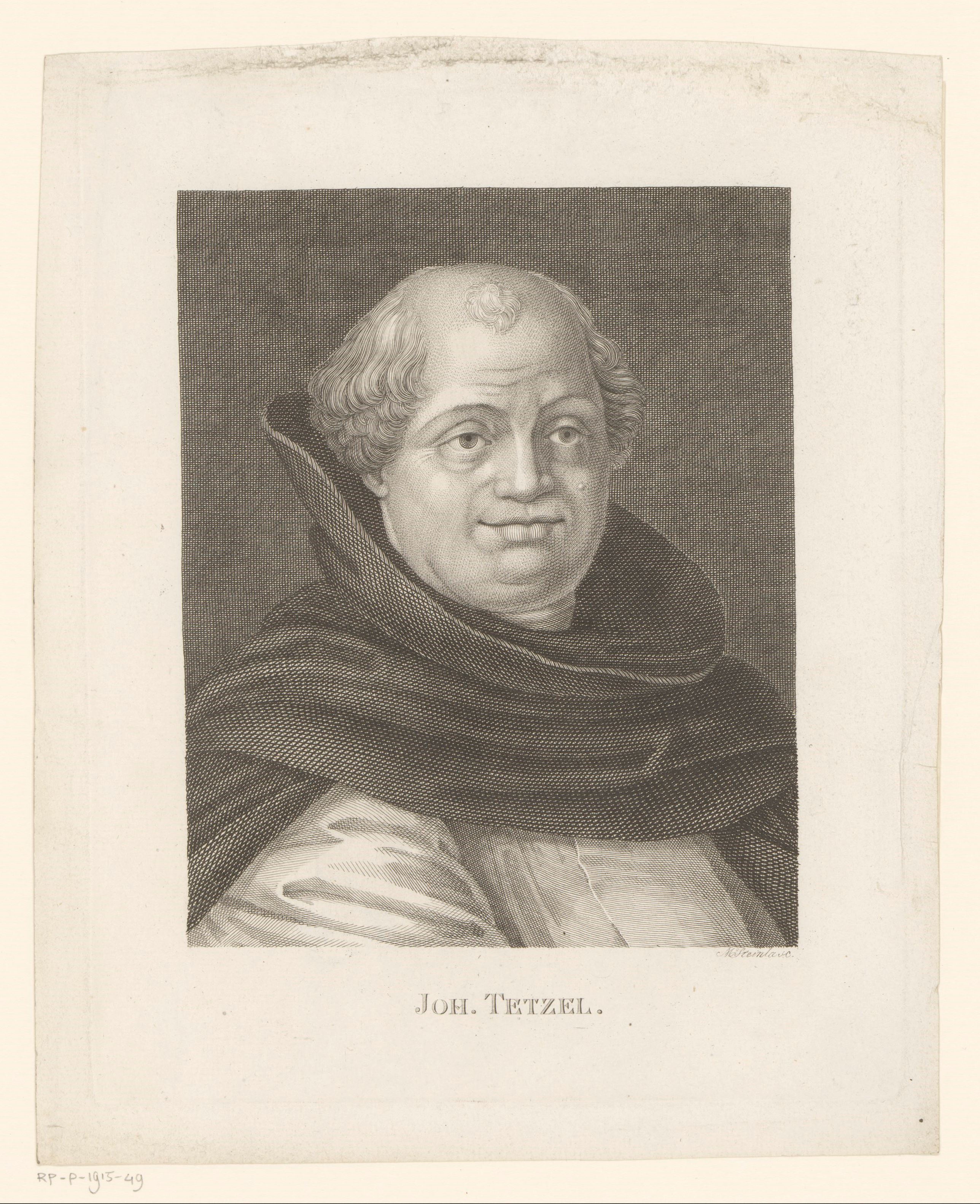 Portrait of Johann Tetzel, german friar, priest, and indulgence seller, print by Moritz Steinla, 1818.