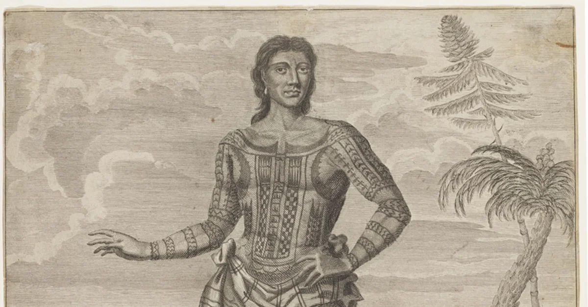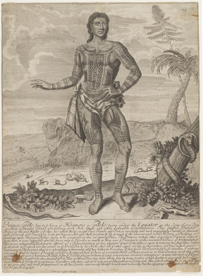 Tattooed Philippine prince Giolo (real name Jeoly) of Miangas, who became a slave in Mindanao, and was bought in 1690 CE by the English explorer and buccaneer-adventurer, William Dampier (1651-1715 CE).