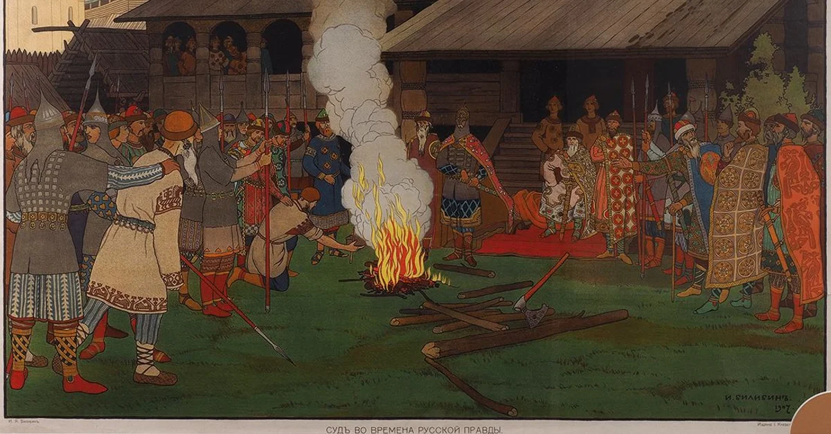 A trial in times of Rus' Truth (Russkaya Pravda), watercolour by Ivan Bilibin, 1890s.